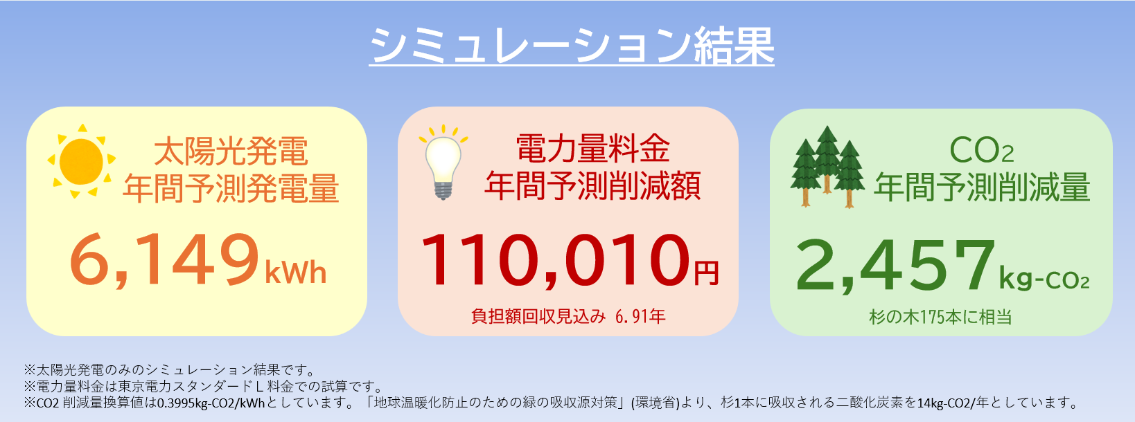 今回太陽光発電と蓄電池を導入されたことで環境への貢献、さらに東京都の補助金を活用したことにより初期投資の回収期間を大幅に短縮でき、コスト面でも大きなメリットが期待できます。