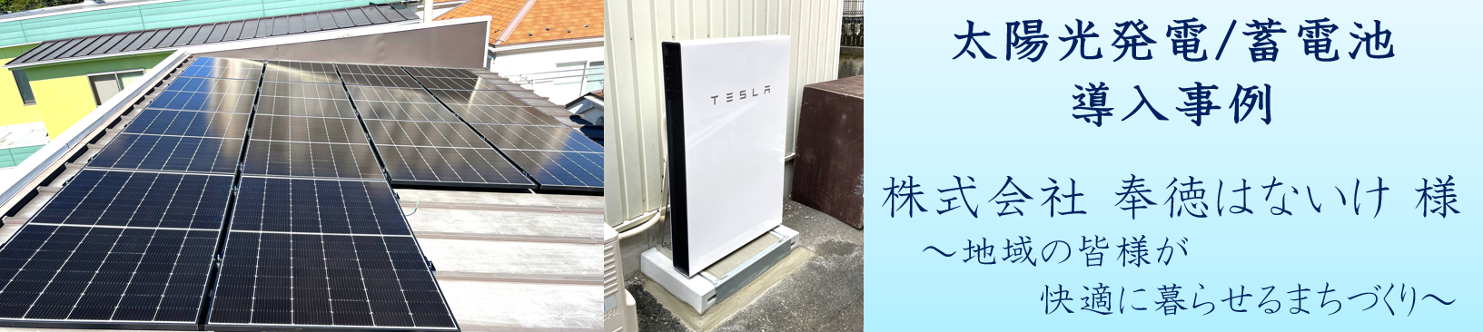 奉徳はないけ様は太陽光発電・蓄電池の導入において、まず「再生可能エネルギーの利用による地域の低炭素化」を目的として掲げており、環境事業にも意欲的な会社様です。